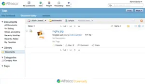 The Alfresco transformation engine is really cool. It’s really simple to create a new transformer, and if you write a transformer that converts a given file type to plain text, you get search indexing for free. There’s a little OCR integration I knocked together with Tesseract over here so you can see what I mean.